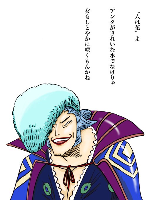Log ワンピース考察 Twitterissa おおお 居眠り狂死郎 のカラーリングが初お目見え 勝手に白髪なのかなと思ってたけど 水色 だったのかー なかなかいいね 早くコミックス表紙とかで尾田先生が描いた狂死郎のカラー見たい